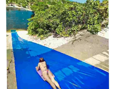 A lona de escorregar é ideal para transformar qualquer espaço ao ar livre em uma pista de diversão cheia de alegria e movimento. 🎉💦